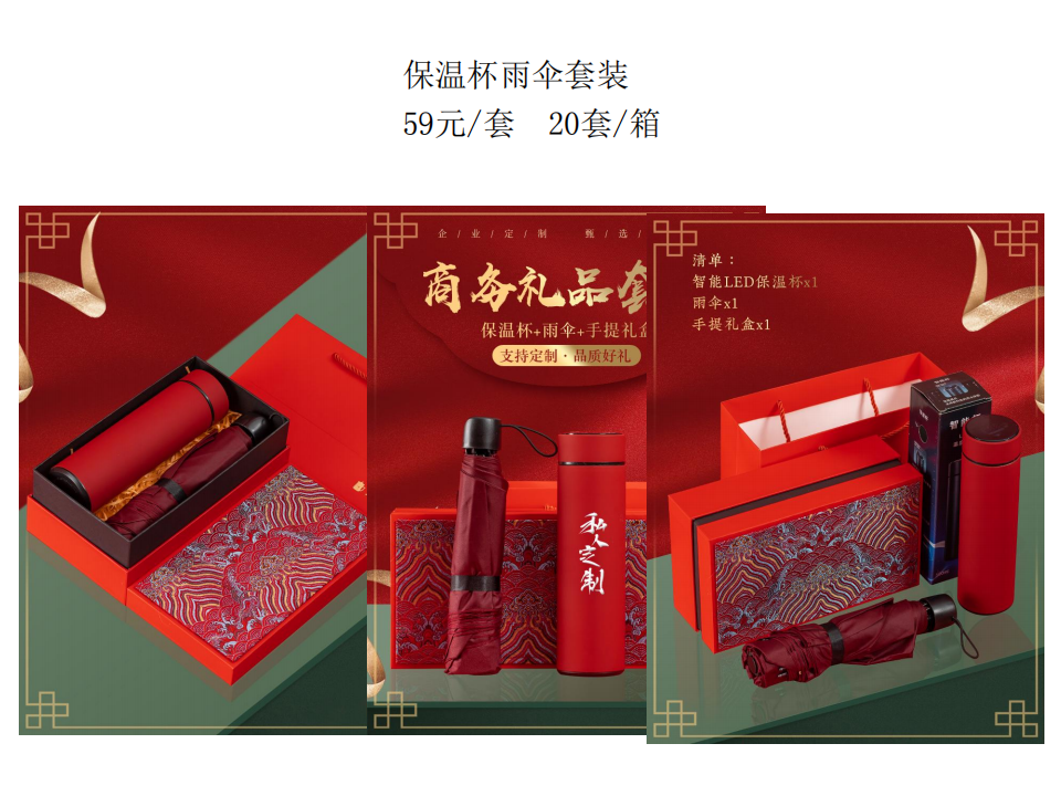 [導(dǎo)讀]:吉祥如意開門紅套裝,致敬逆行者,保溫杯雨傘套裝,商務(wù)禮品套裝,茶具套裝,保溫杯套裝。歡迎咨詢。