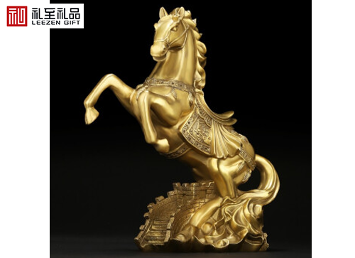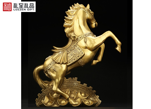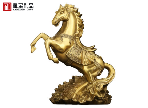 象征著財富與實力。桌上擺放駿馬、寓意捷足先登,一馬當先。辦公室黃銅馬到成功馬擺件的馬蹄剛勁有力,壯志凌云,飛黃騰達。