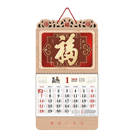 2018年狗年新款浮雕福字掛歷 雙膠四色印刷廣告福字吊牌定制批發(fā)