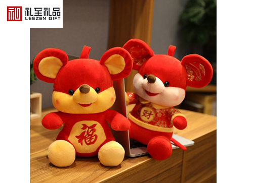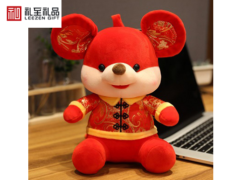 唐裝微笑鼠毛絨公仔春節(jié)禮品