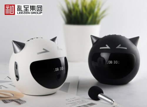 科技白智能鬧鐘麥克風(fēng)藍(lán)牙音響年會(huì)禮品